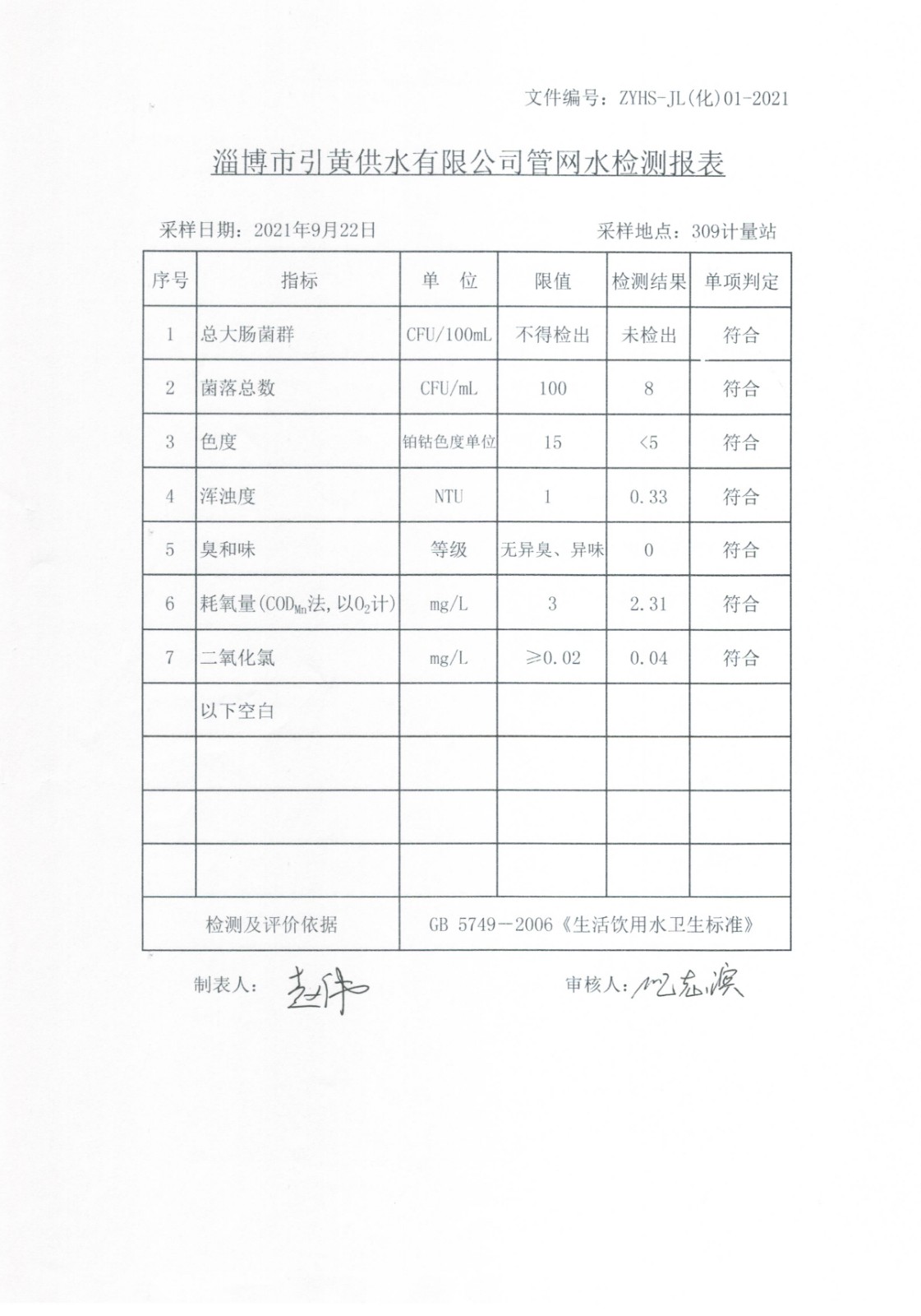 2021年9月水質(zhì)月檢公示 點(diǎn)擊數(shù):0次 發(fā)布時(shí)間:2021-10-14 11:03:55 9月上管網(wǎng)水半月檢7項(xiàng)檢測(cè)匯總表9月下管網(wǎng)水半月檢7項(xiàng)檢測(cè)匯總表南定出廠儷園小區(qū)灃水出廠生活飲用水-配水廠出廠水(全分析)生活飲用水-周村計(jì)量站水世紀(jì)花園生活飲用水-齊魯進(jìn)水四砂生活區(qū)體育中心